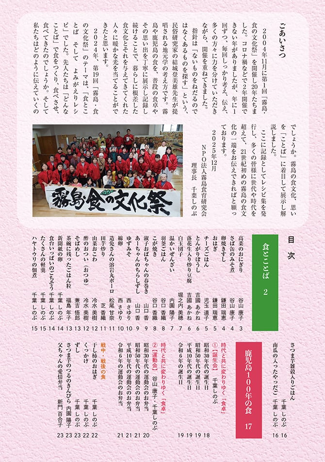 第19回霧島・食の文化祭(2024年12月1日開催)での展示料理すべての、約140の料理レシピ、この料理への思いなどを記載しています。